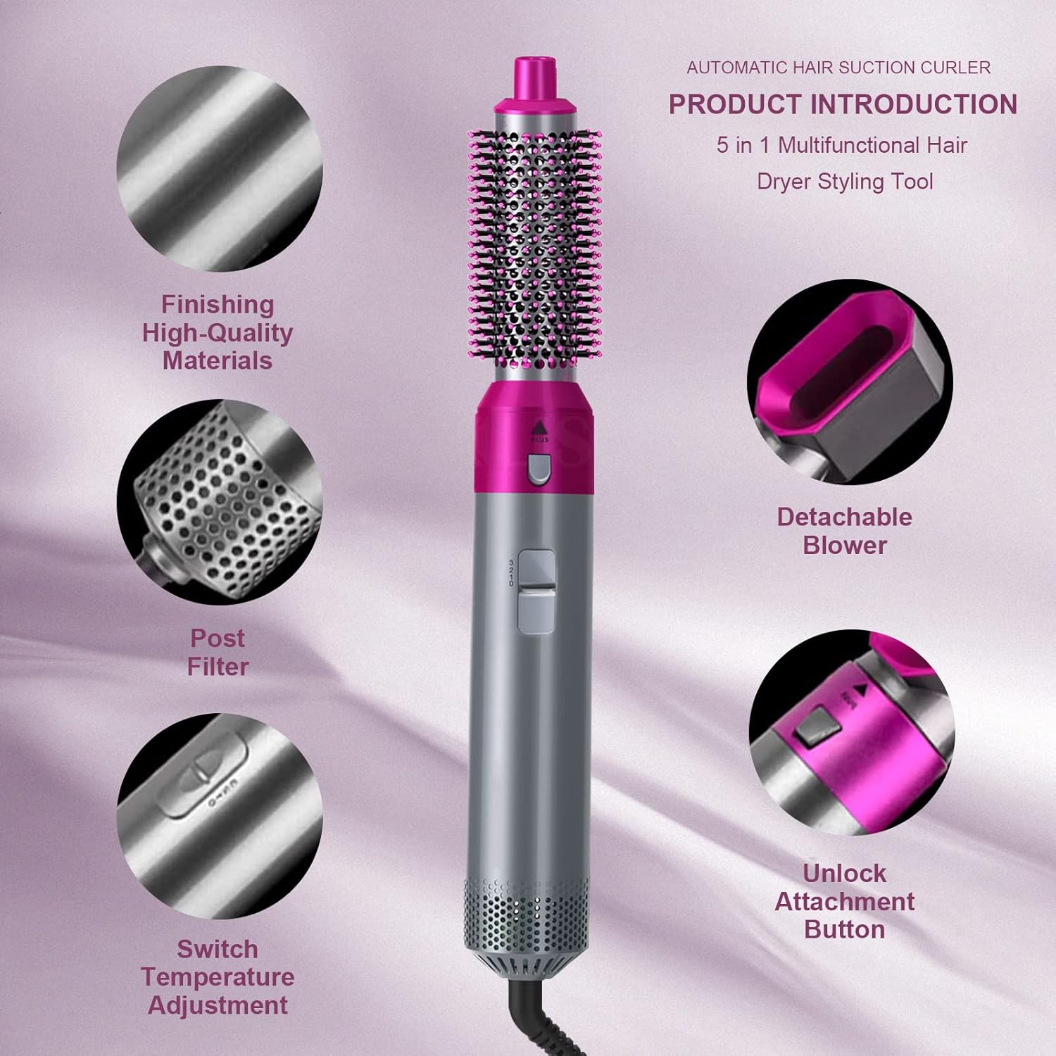 5 in 1 Hair Styler for Women – Hot Air Brush Dryer with Interchangeable Styling Heads | Hair Curler, Straightener, Volumizer & Dryer Brush | Multifunction Electric Styling Tool